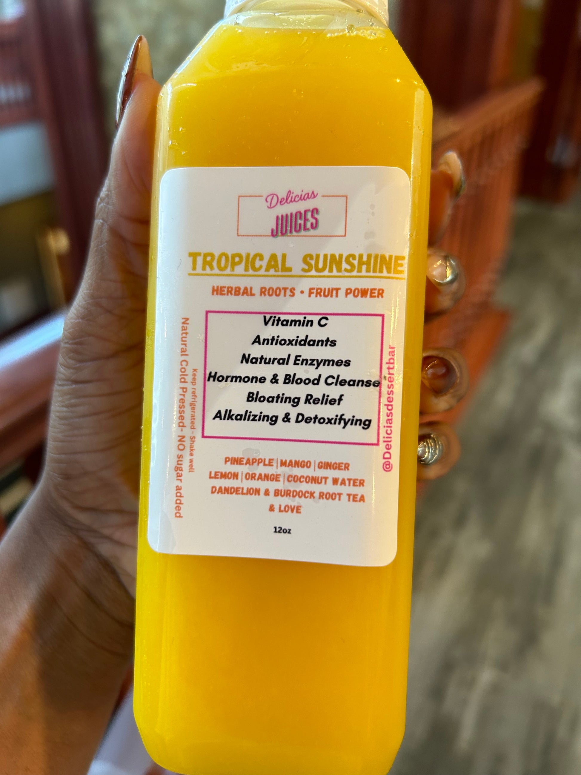 Bring the sunshine to your day with this vibrant blend of vibrant blend of pineapple, mango, orange, lemon, ginger, & coconut water that hydrates, boosts immunity, aids digestion, & lifts your mood—every sip feels like a mini-vacation.